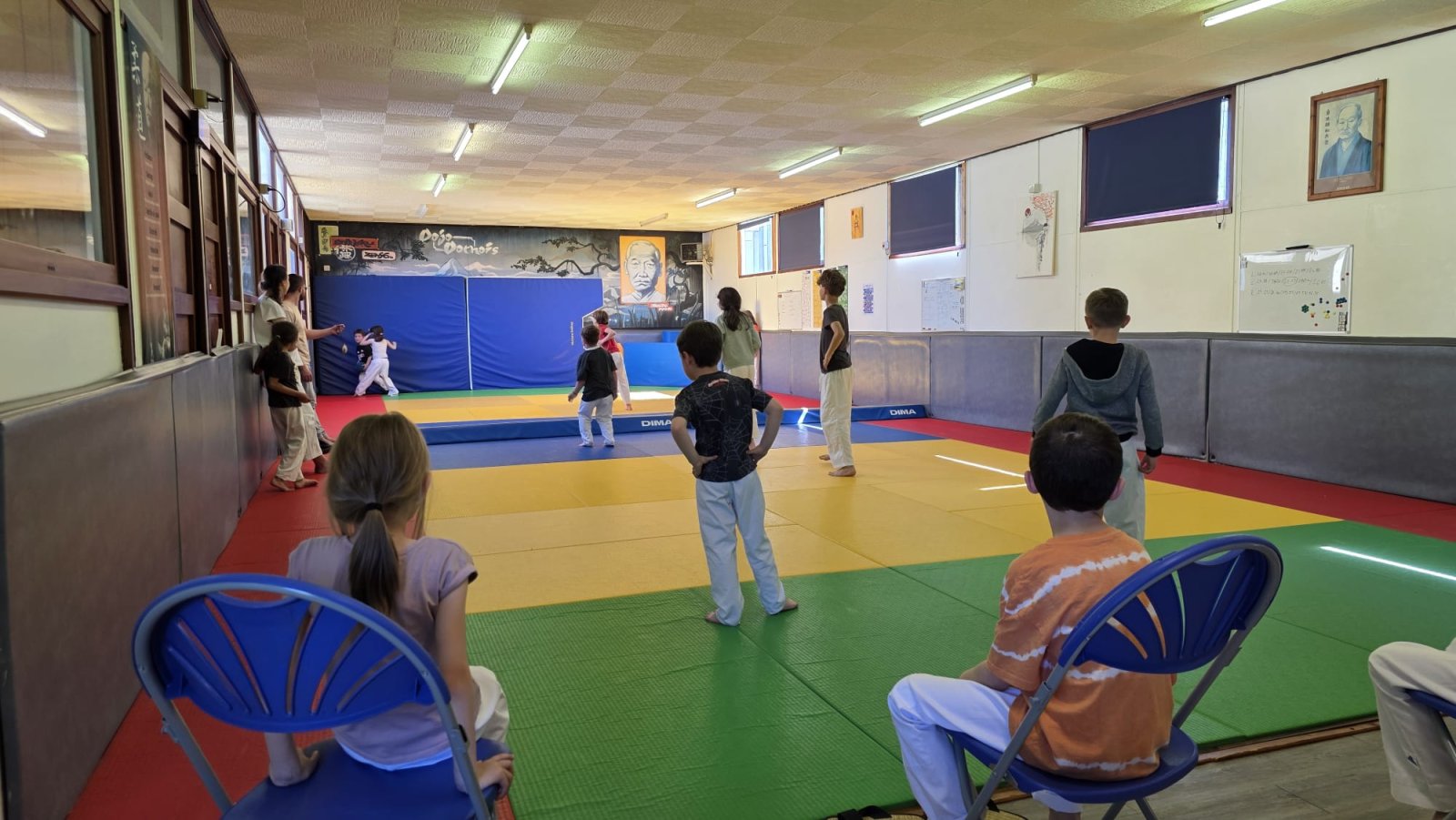 Le coup d'envoi a été donné en groupes pour une matinée intensive. Au programme : perfectionnement des chutes avant, travail sur les roulades et révisions de diverses techniques fondamentales. L'application et l'énergie des enfants sur le tatami ont montré une belle progression technique.