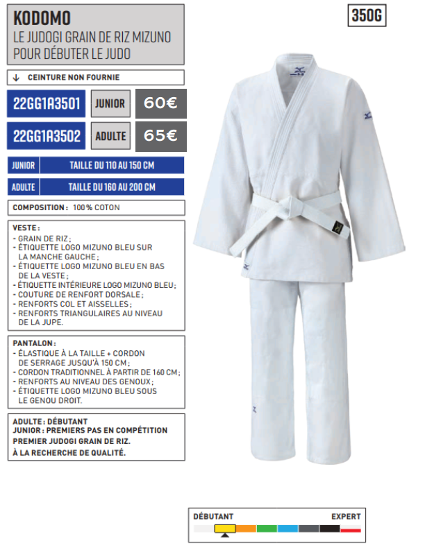 JUNIOR : PREMIERS PAS EN COMPÉTITION PREMIER JUDOGI GRAIN DE RIZ À LA RECHERCHE DE QUALITÉ.